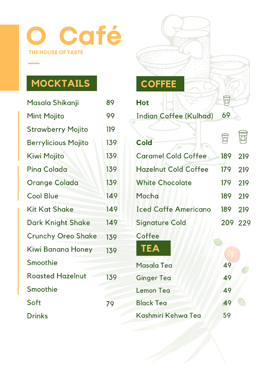 O Cafe & Restaurant Menu